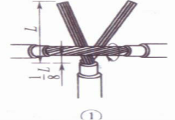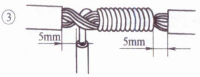 ①将支路芯线的线头与干线芯线十字相交,在支路芯线根部留出5mm,然后顺时针方向缠绕6~8圈后,用钢丝钳切去余下的芯线,并钳平芯线末端。
