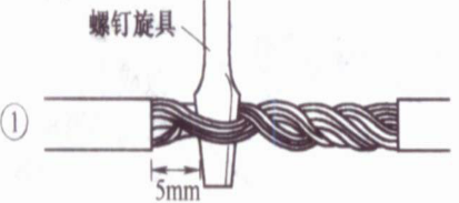 ②互相绞合2~3圈后扳直两线头。