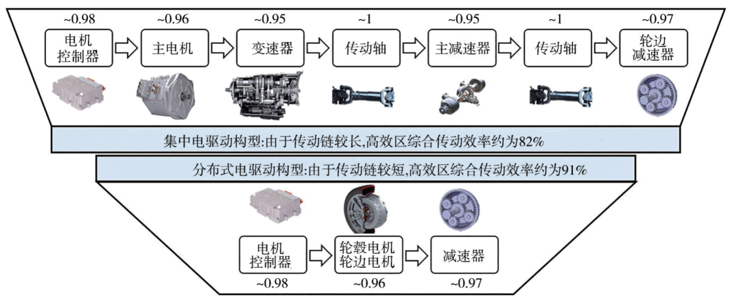 图1 分布式电驱动与集中式驱动效率对比