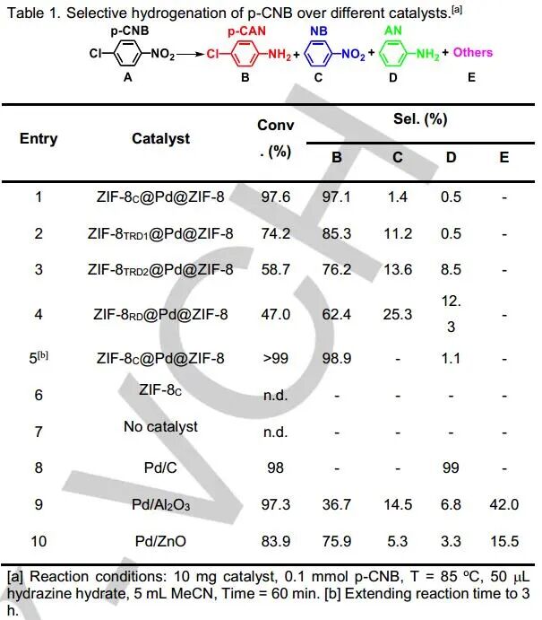 @Pd@ZIF-8对p-CAN的选择性,证明了催化剂的优越性。此外,通过检查转化率对催化剂量的依赖性,可以排除ZIF-8