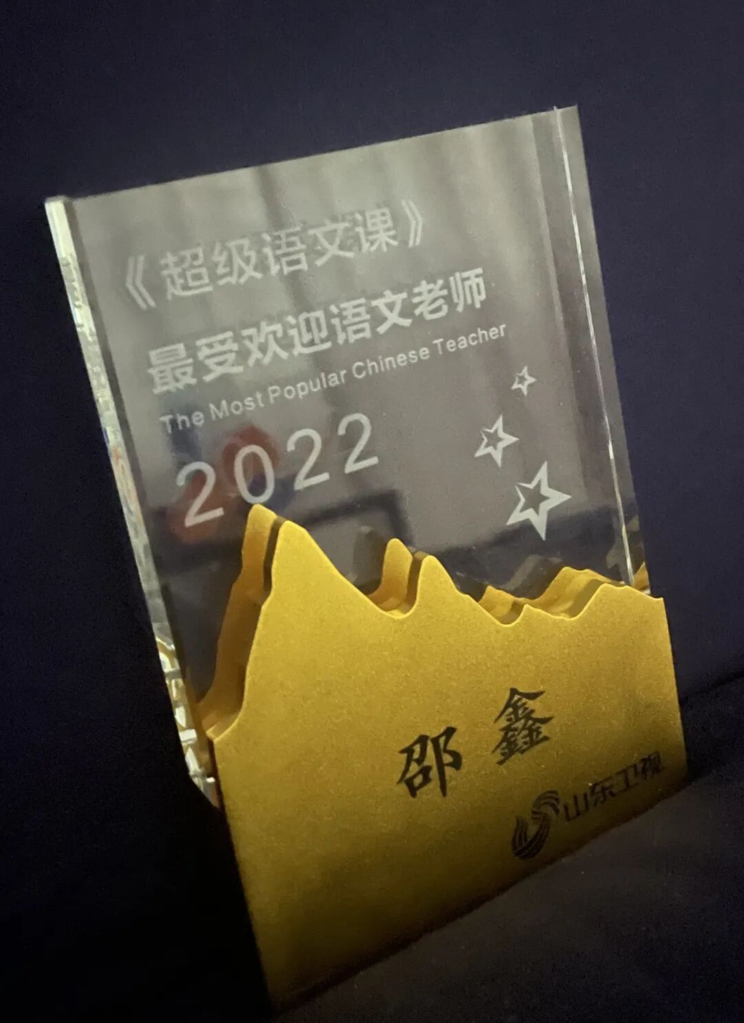 帅帅的北大才子 邵鑫老师 ,果然不负众望,过五关斩六将,斩获了 2022《超级语文课》冠军,获得“最受欢迎语文老师”称号 。