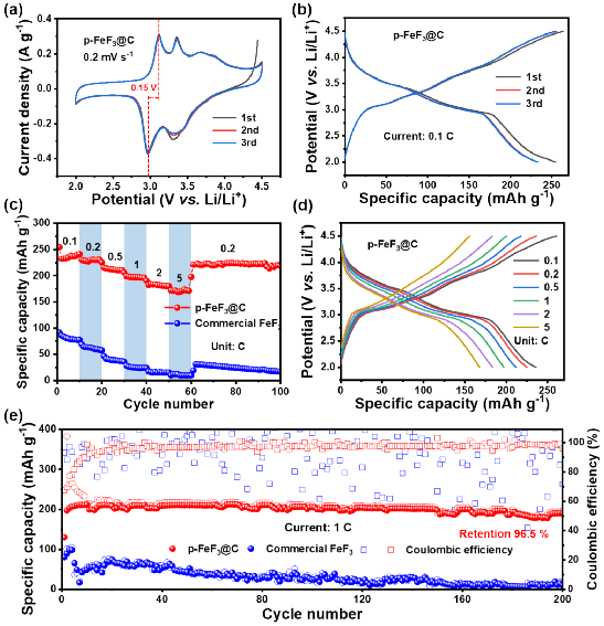 江汉大学梁济元Nano Energy:“一石二鸟”策略原位构筑多孔FeF3@C复合无锂正极材料用于高性能锂离子电池