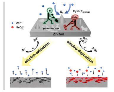 1 ) 开创性的电氧化形成的3D-锌基质显著降低了局部电流密度,有利于适应电镀/剥离过程中的体积变化。同时,电沉积得到的ZnSe覆盖层抑制了副反应,促进了有效的脱溶,从而加速了锌离子在锌阳极上的沉积动力学。