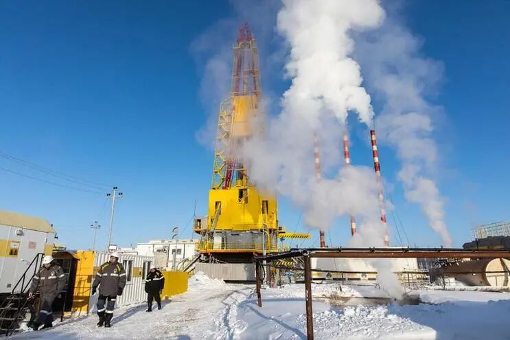 这是2019年2月27日在俄罗斯克拉斯诺亚尔斯克边疆区的万科尔油田拍摄的钻井现场。(新华社记者白雪骐摄)