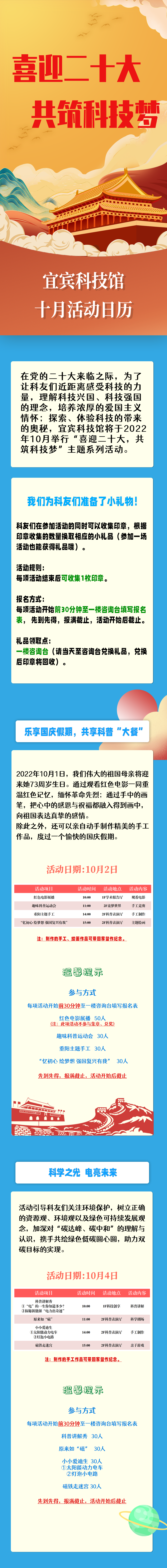 喜迎二十大,共筑科技梦丨宜宾科技馆十月活动日历
