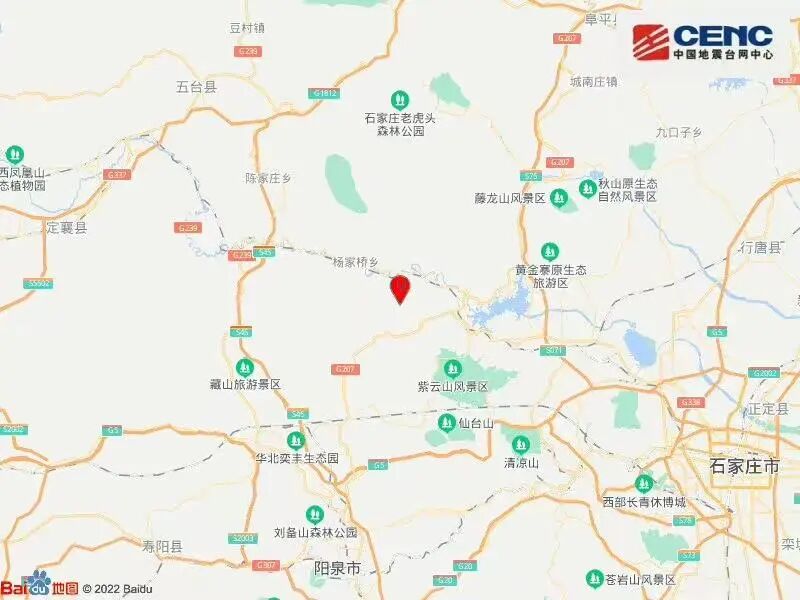 中国地震台网正式测定:10月03日01时49分在河北石家庄市平山县(北纬38.35度,东经113.73度)发生4.3级地震,震源深度10千米。