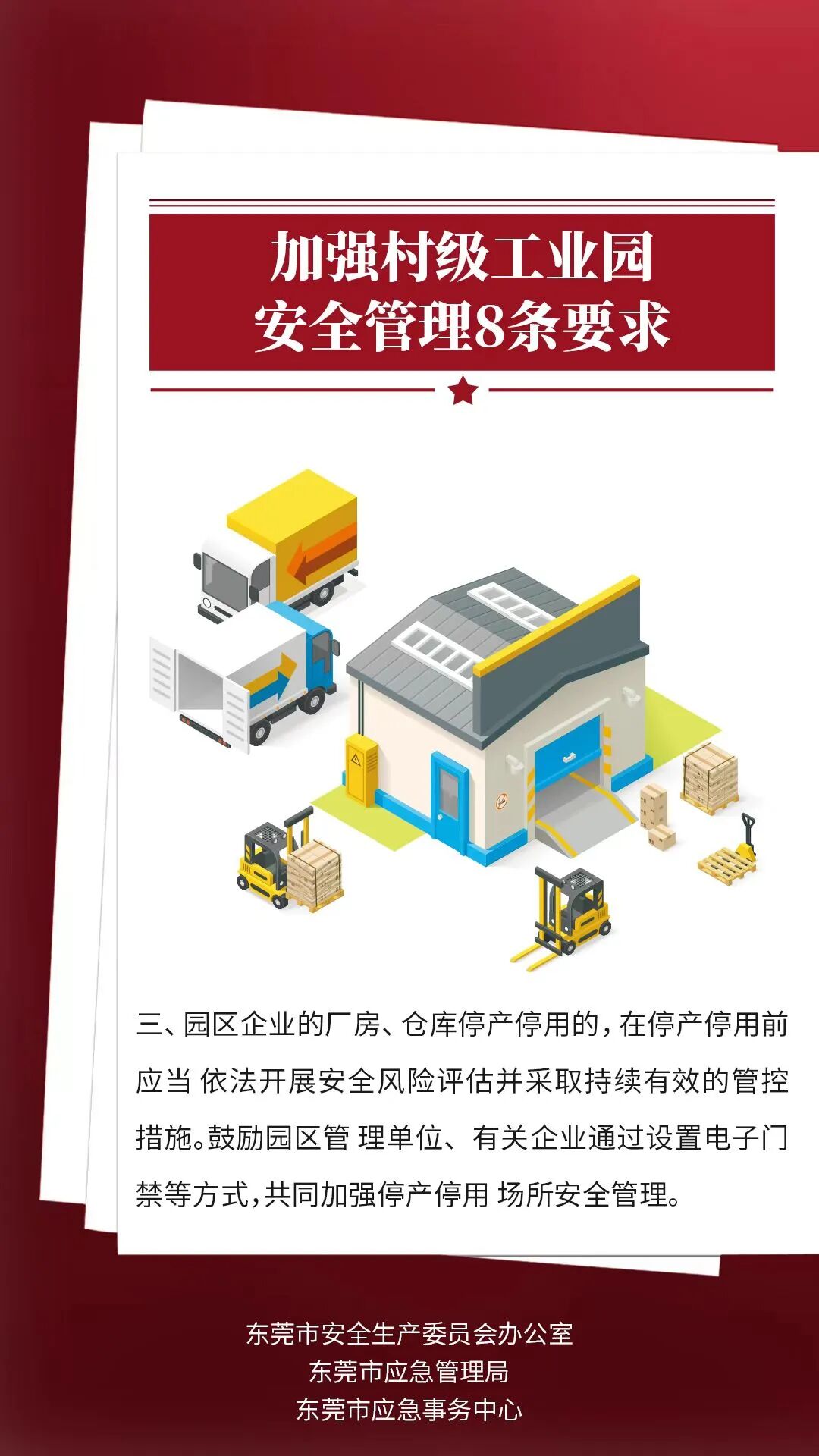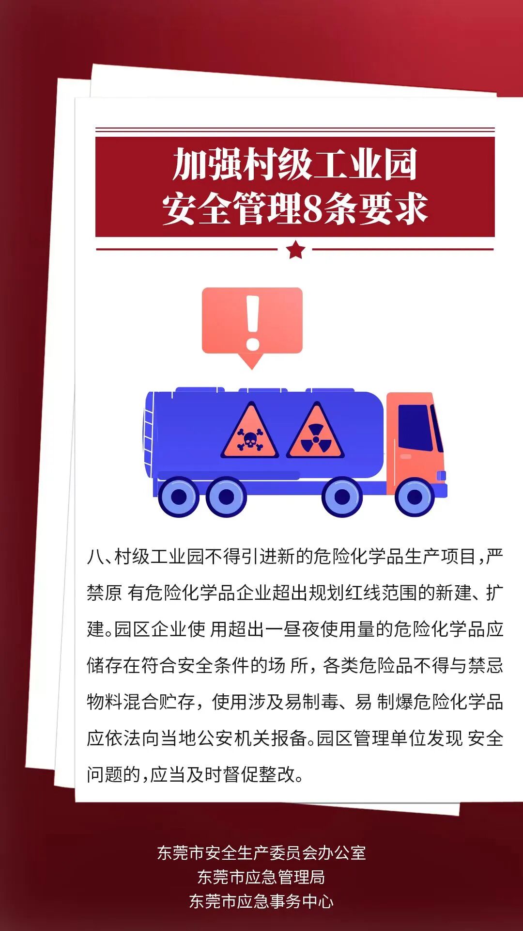为进一步加强村级工业园安全管理工作,着力破解当前村级工业园普遍存在的安全生产监管职责不清、企业安全生产主体责任不落实等顽疾,有效防范化解重大安全风险,全面提升村级工业园安全管理水平,近日,广东省应急管理厅 出台 村级工业园八条管理规定 。