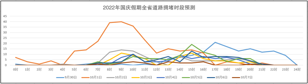 预计今年国庆假期,拥堵时段集中在 8—10时、13—18时 ,其中10月1日8—9时拥堵程度最高。