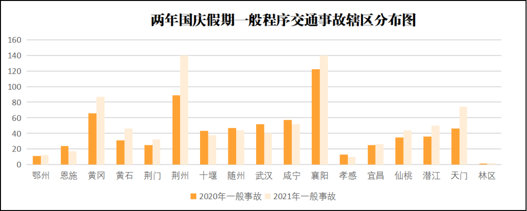 武汉简易交通事故多发 ,占25.98%; 襄阳、荆州两地一般程序交通事故多发 ,分别占16.61%、14.52%。