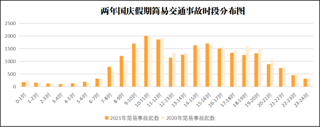 10—12时、14—20时 为简易交通事故多发时段, 18—20时 为一般程序交通事故多发时段。