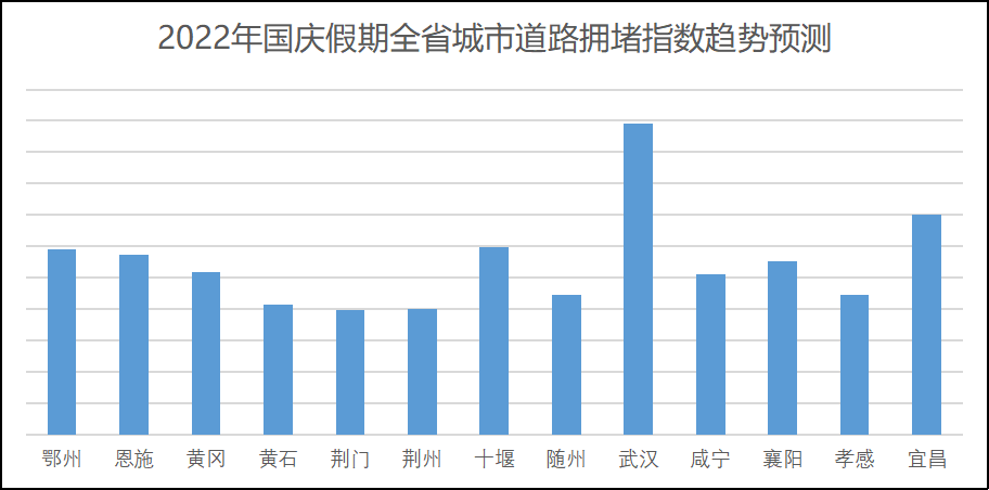 武汉、十堰、宜昌、鄂州、恩施、襄阳 等地城市道路拥堵风险较高。