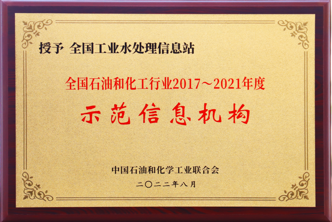 2022年9月,在第五届石油和化工行业信息机构考评总结大会上,全国工业水处理信息站获得 “全国石油和化工行业示范信息机构”、“全国石油和化工行业优秀信息机构” 等荣誉称号,并获准升级为 “全国工业水处理信息总站” 。