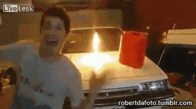 在车前盖上倒汽油点燃,你不炸谁炸?