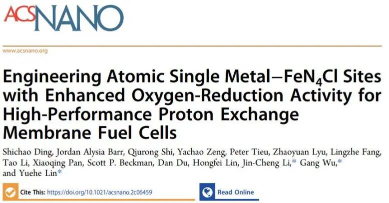 林跃河/李金成/武刚ACS Nano: 引入Cl原子,助力单原子金属-FeN4Cl位点高效催化ORR