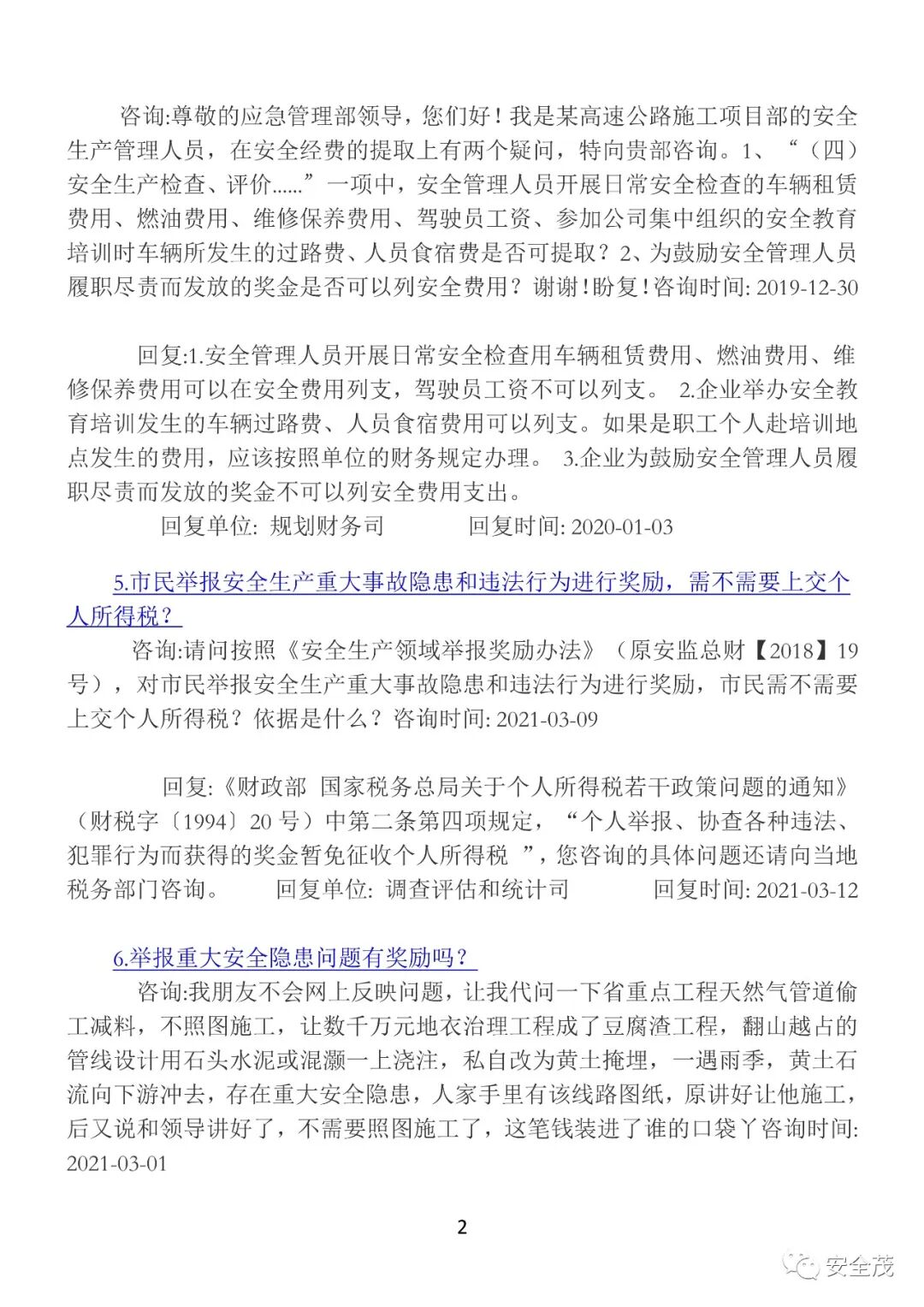咨询 : 尊敬的领导: 1 、企业消防设备设施的维修、养护费用支出,可不可以从企业安全生产费用中支出? 2 、企业购买的安全帽、口罩等劳动防护用品费用支出,可不可以从企业安全费用中支出?谢谢! 2022-03-08 回复 : 可以。 2022-03-14 规划财务司