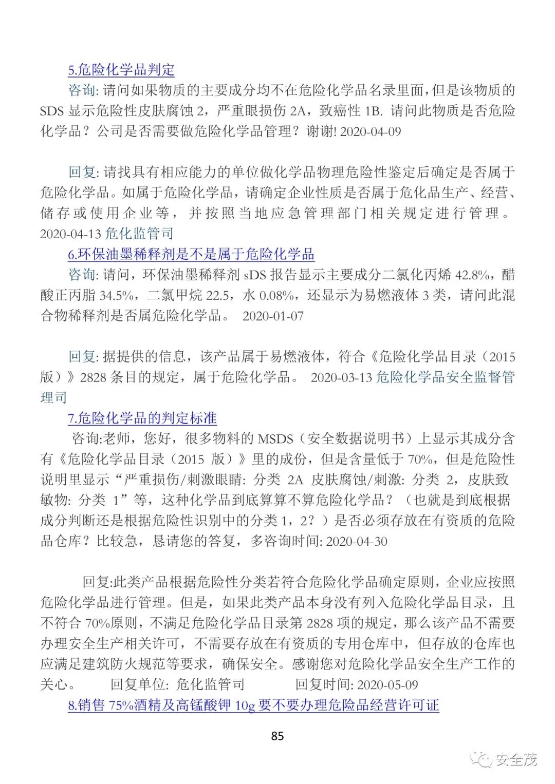 回复 : 请按照《国家安全监管总局办公厅关于冶金等工贸行业安全监管工作有关问题的复函》(安监总厅管四函〔 2014 〕 43 号)文件执行。 回复单位 : 危险化学品安全监督管理司 回复时间 : 2020-03-13