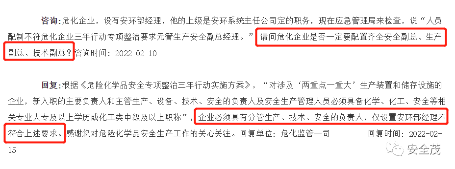 应急部回复:企业必须具有分管生产、技术、安全的负责人,仅设置HSE经理不符合要求!