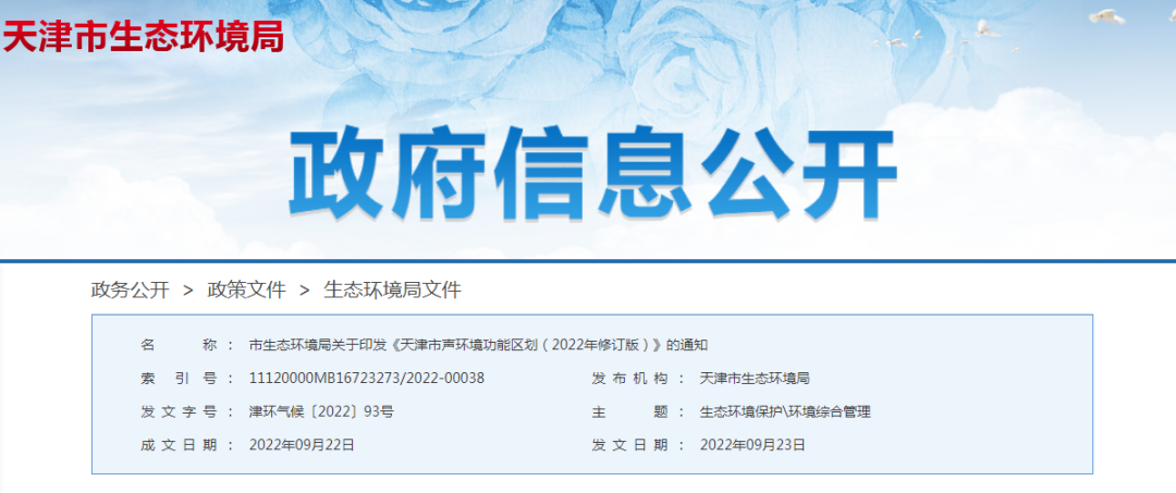 天津市声环境功能区划(2022年修订版),10月1日施行
