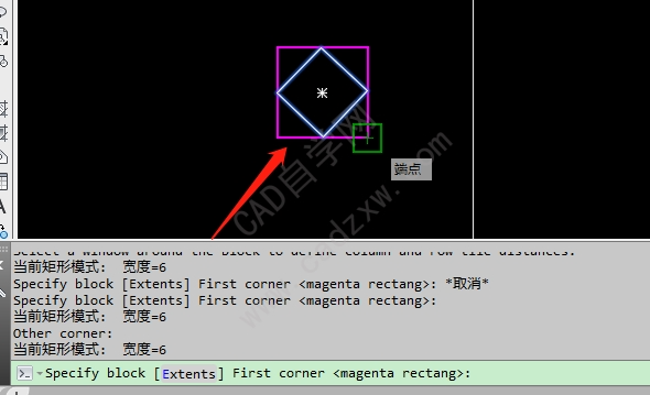 命令行输入extrim,全选对象,只要单击洋红色矩形内部任一点,即可一键快速完成修剪。