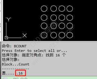 命令行输入bount,框选统计范围,命令行立刻显示块数量。