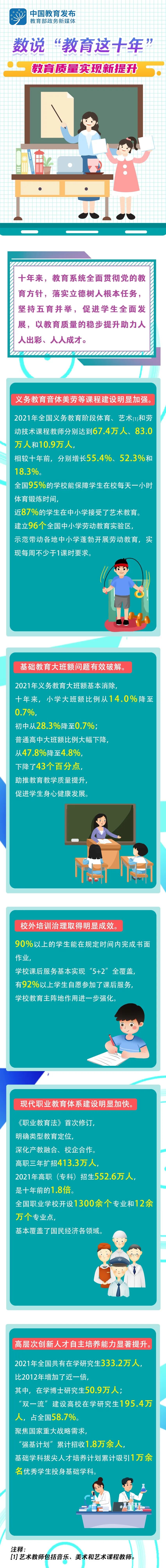 教育是国之大计、党之大计。党的十八大以来,我国教育面貌正在发生格局性变化。今天的 “教育新征‘图’” 专栏通过一组数据,“图”说十年来教育质量的新提升——