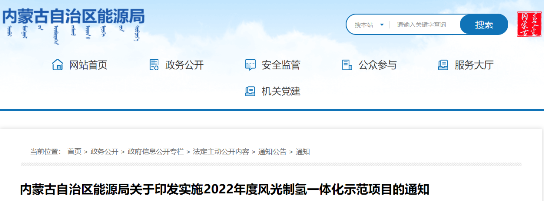 9月28日,内蒙古自治区能源局发布《关于印发实施2022年度风光制氢一体化示范项目的通知》(简称《通知》)。