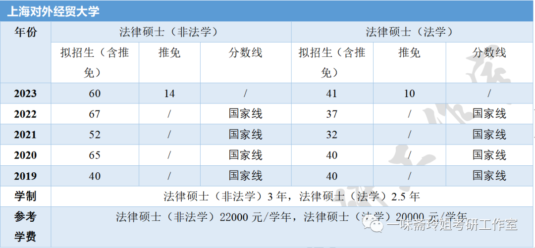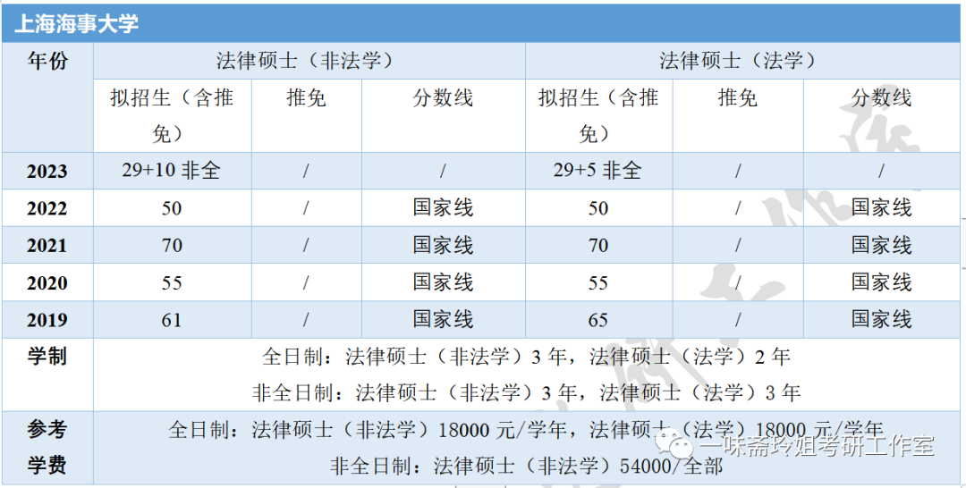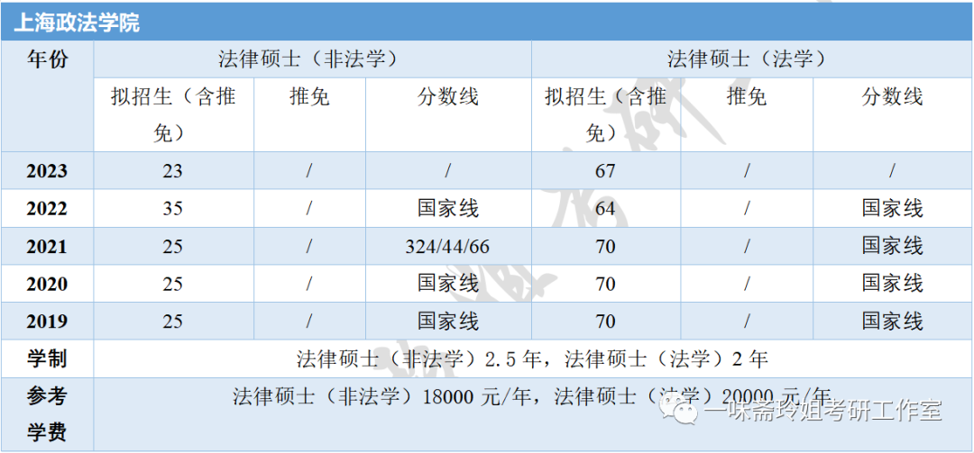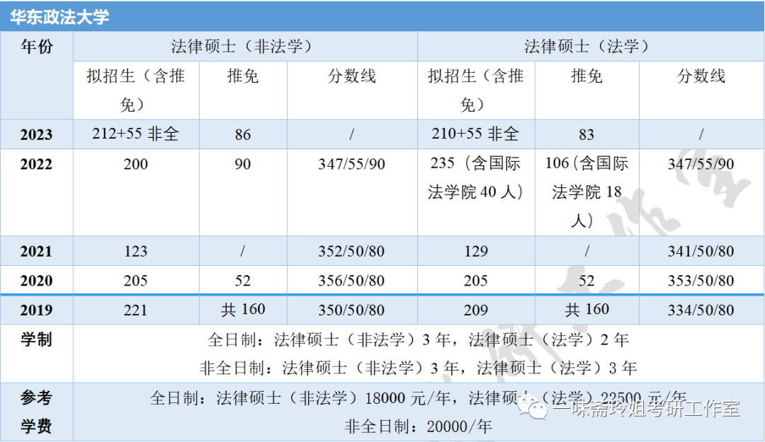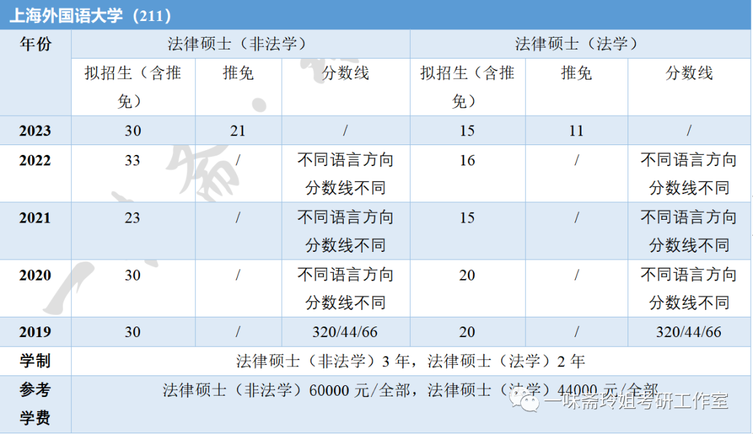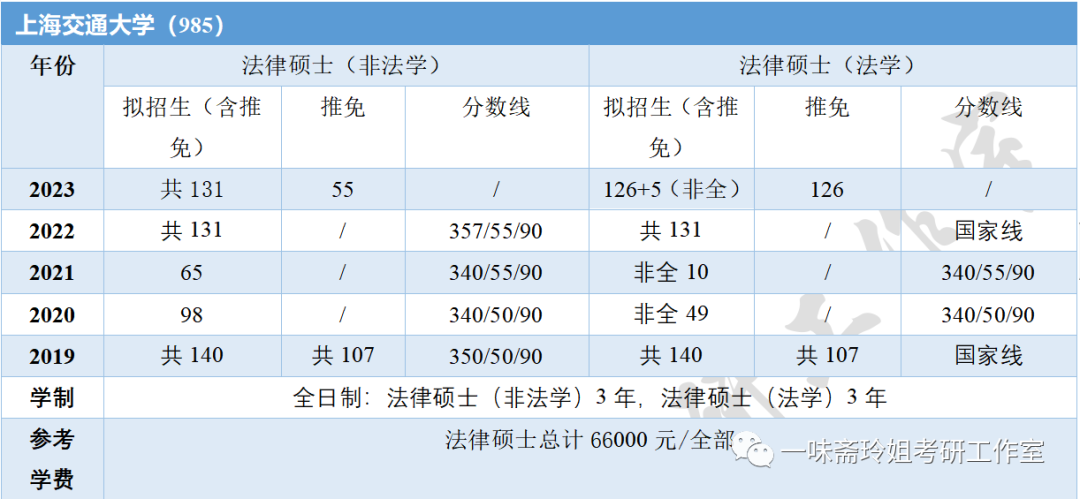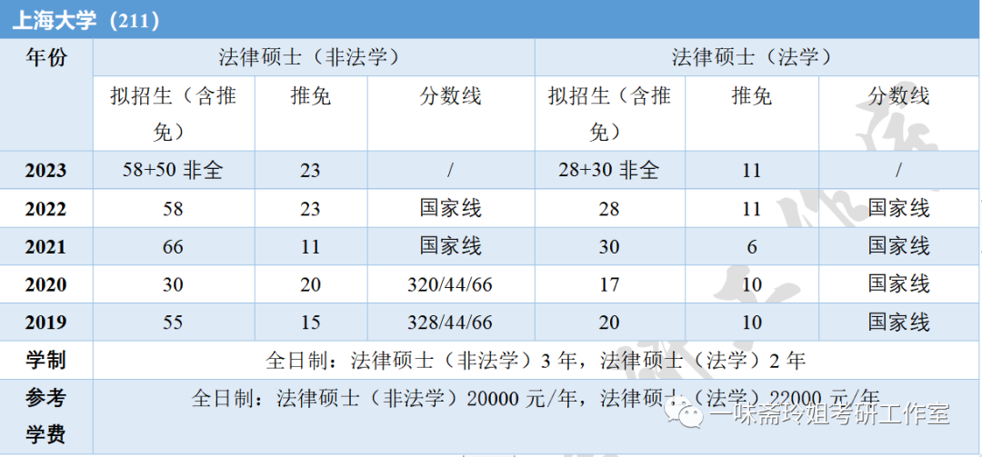 上海部分高校近五年法硕招生信息汇总