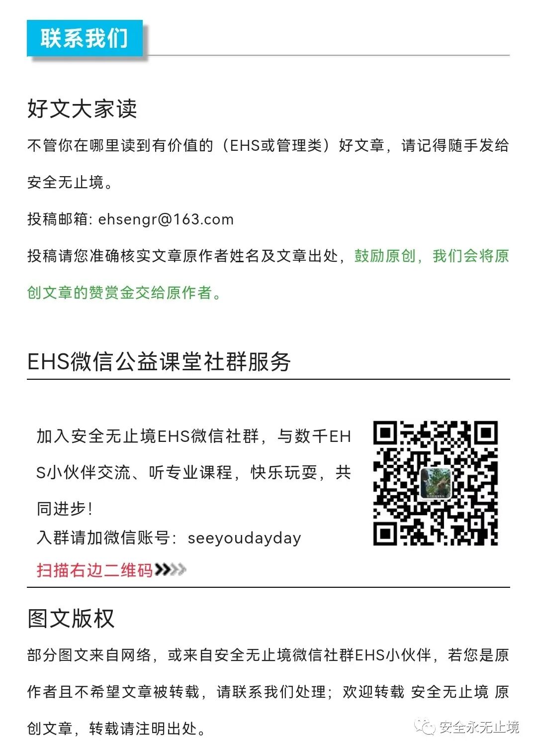 一群当E(环境)H(健康)S(安全)是事业的小伙伴,在这里与大家共同学习探讨专业知识,共享全球资讯,分享生活中的趣味儿。安全永无止境,天更蓝,水更清,生活工作更happy。