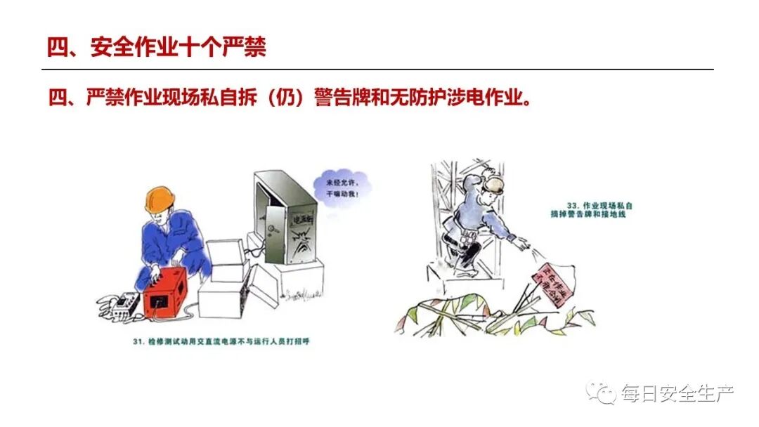 四、严禁作业现场私自拆(扔)警告牌和无防护涉电作业