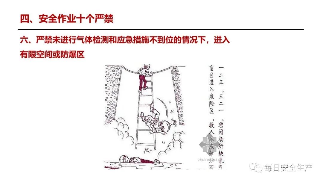 六、严禁未进行气体检测和应急措施不到位的情况下进入有限空间或防爆区