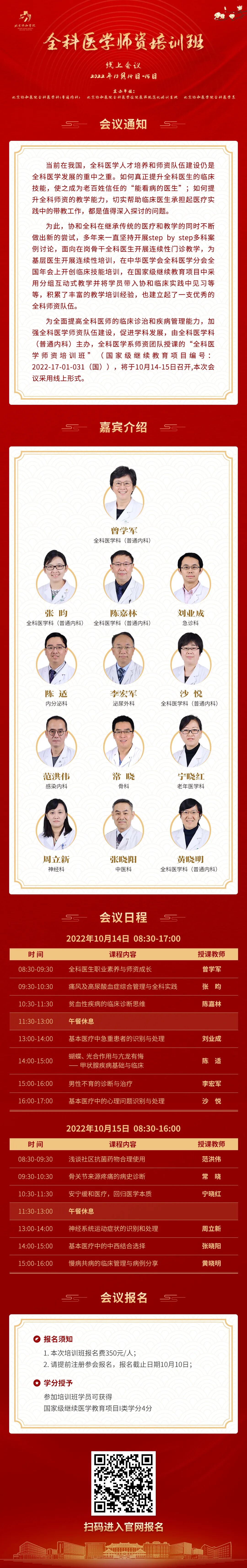 为全面提高全科医厅的临床诊治和疾病管理能力,加强全科医学师资队伍建设,促过学科发展,特举办本次“全科医学师资培训班”。