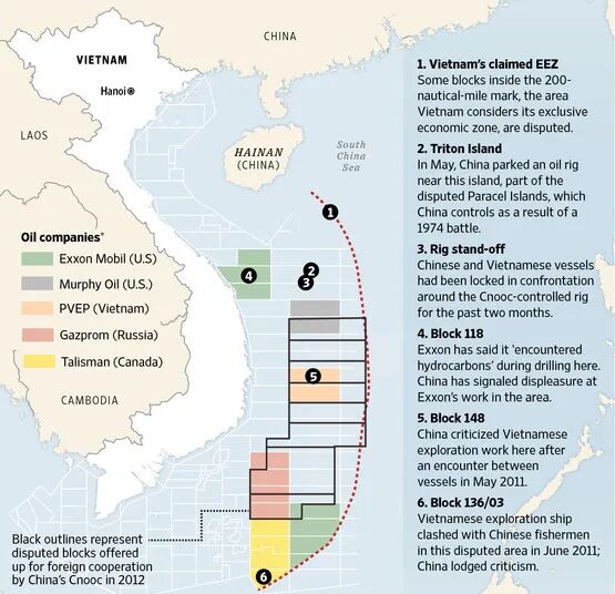 越南在南海主张的油气资源区块,部分进入我国九段线