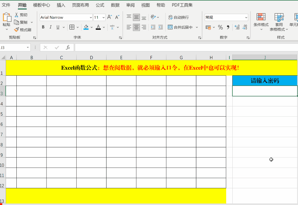 1、公式:=(AND($J$3<>"",$J$3=111))中,J3为“请输入密码”下方的单元格地址。