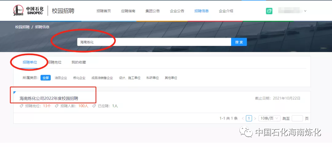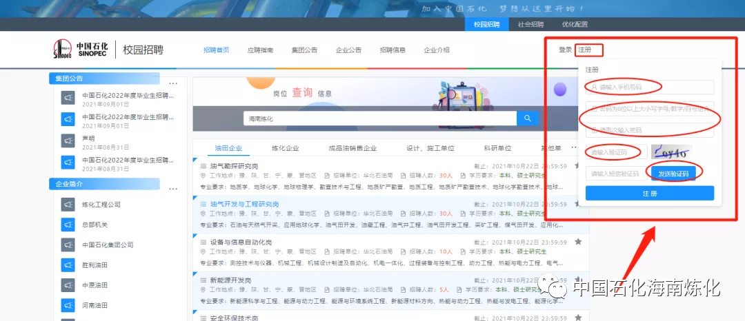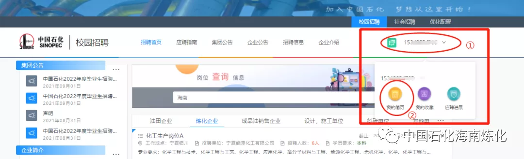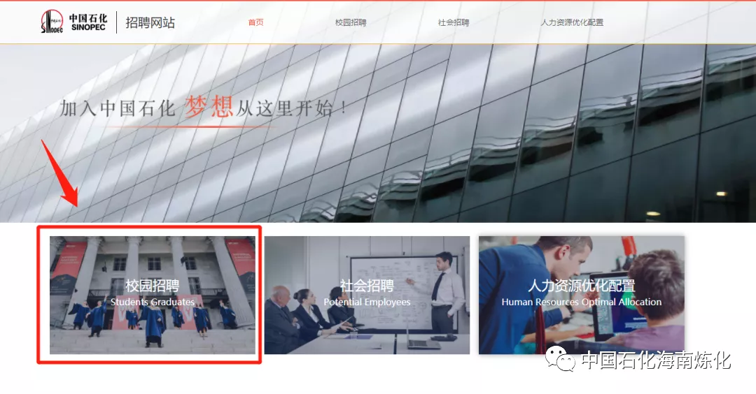 进入中国石化人才招聘网站,点击进入“校园招聘”。