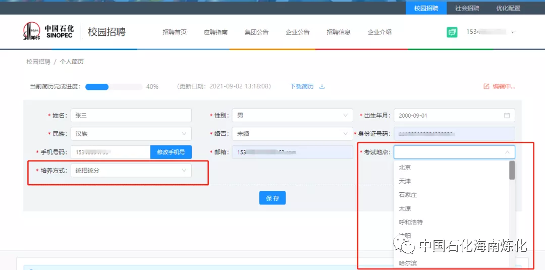 2.考试地点选择:可在中国石化设定的考试地点中选择任意一个考试地点;