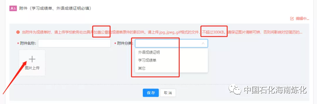 3.上传附件时,按要求上传指定材料。