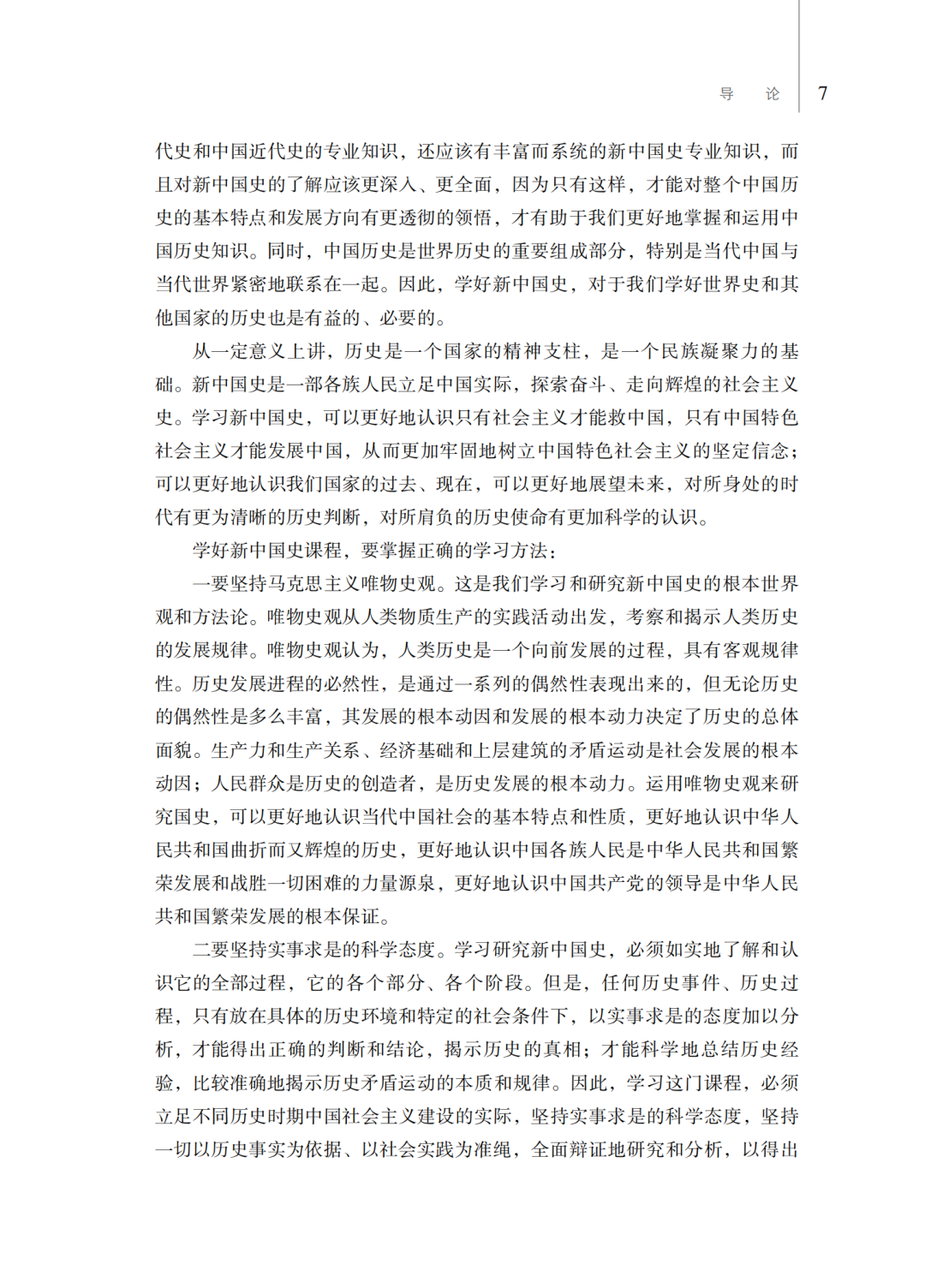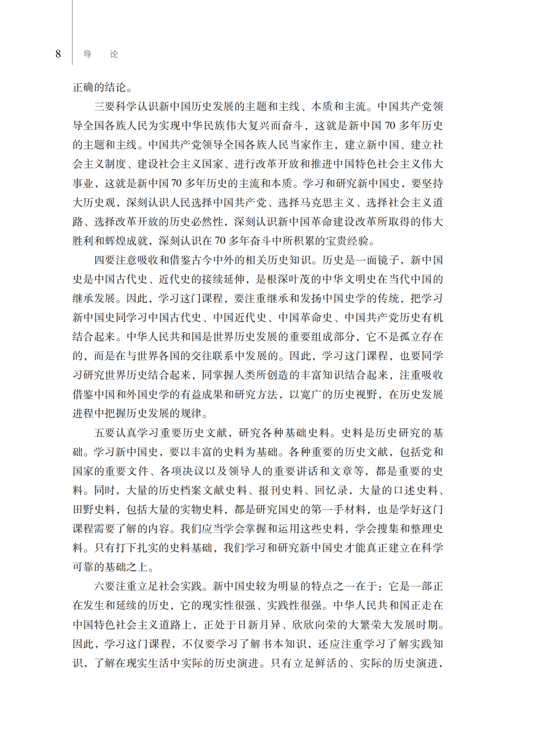 第一,坚持马克思主义历史观,全面贯彻习近平总书记关于“历史是最好的教科书。学习党史、国史,是坚持和发展中国特色社会主义、把党和国家各项事业继续推向前进的必修课”等重要讲话精神,是一本高水平的国史教材。
