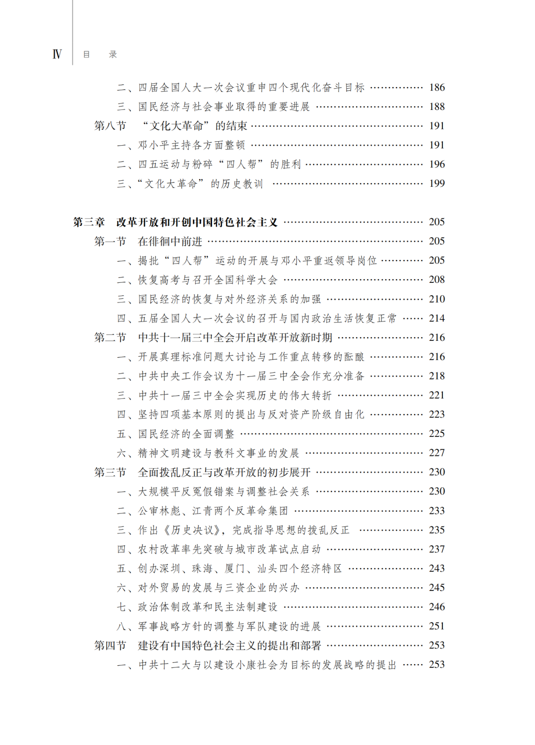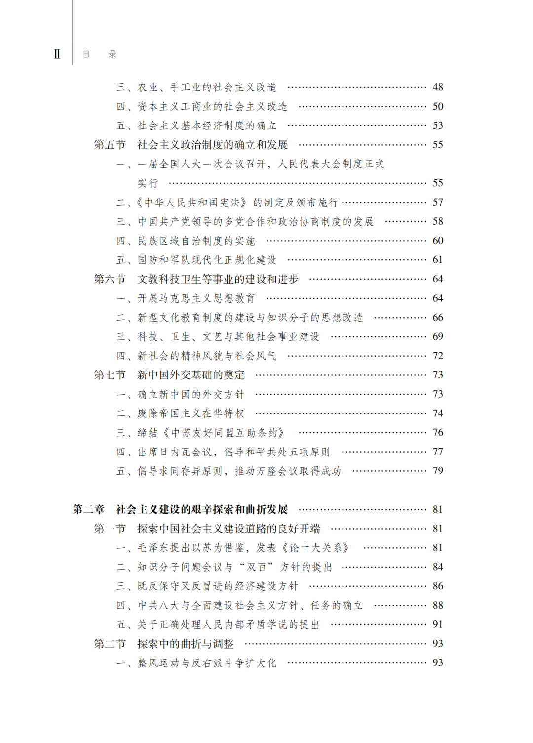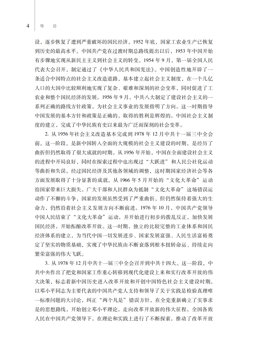 第三,从总体谋篇布局上,教材将中华人民共和国70多年的历史安排为六章:第一章中华人民共和国的诞生和社会主义制度的确立,第二章社会主义建设的艰辛探索和曲折发展,第三章改革开放和开创有中国特色社会主义,第四章面向二十一世纪的社会主义现代化建设,第五章向全面建设小康社会目标迈进,第六章中国特色社会主义进入新时代。这种总体设计展示了中华人民共和国历史的全貌。具体在各章的编写中,力图真实反映在新民主主义革命取得胜利的基础上,中国共产党领导全国各族人民当家作主建立新中国、建立社会主义制度、建设社会主义,进行改革开放和建设中国特色社会主义,中国特色社会主义进入新时代的历史;如实记载开辟中国特色社会主义伟大道路,中华民族从站起来、富起来到强起来的历史过程;有力说明新中国成立、改革开放、新时代是实现中华民族伟大复兴过程中的三座历史丰碑。