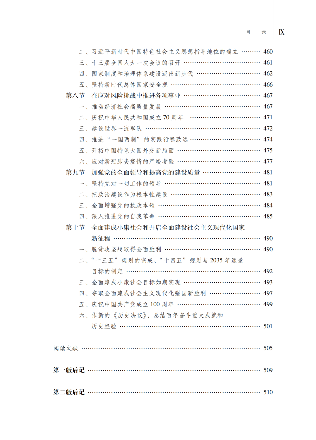 第四,教材修订的重点是加写并突出第六章《中国特色社会主义进入新时代》,即党的十八大以来的国史内容。第六章《中国特色社会主义进入新时代》将极为丰富和复杂的流动着的历史分为十节,力图展示中国共产党领导全国各族人民跨入全面建设社会主义现代化强国的历史过程。教材注意新的发展和新的成就,注意引用权威的最新数据。教材不回避重大和敏感问题,勇于研究难题,如在书稿中增加了“中美贸易摩擦”,“香港问题,国安法”等,以及勇于研究著述正在发生发展着的历史事件,如专门加写了“应对新冠肺炎疫情的严峻考验”,“‘十四五’规划与2035年远景目标的制定”,“脱贫攻坚取得全面胜利”,“全面建成小康社会”,“庆祝中国共产党成立100周年”,“十九届六中全会和新的《历史决议》”等新内容。