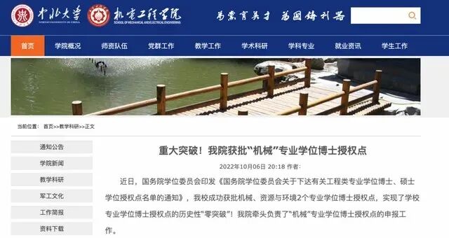 10月6日,中北大学官网公布,中北大学成功获批机械、资源与环境2个专业学位博士授权点,实现了学校专业学位博士授权点的历史性“零突破”!