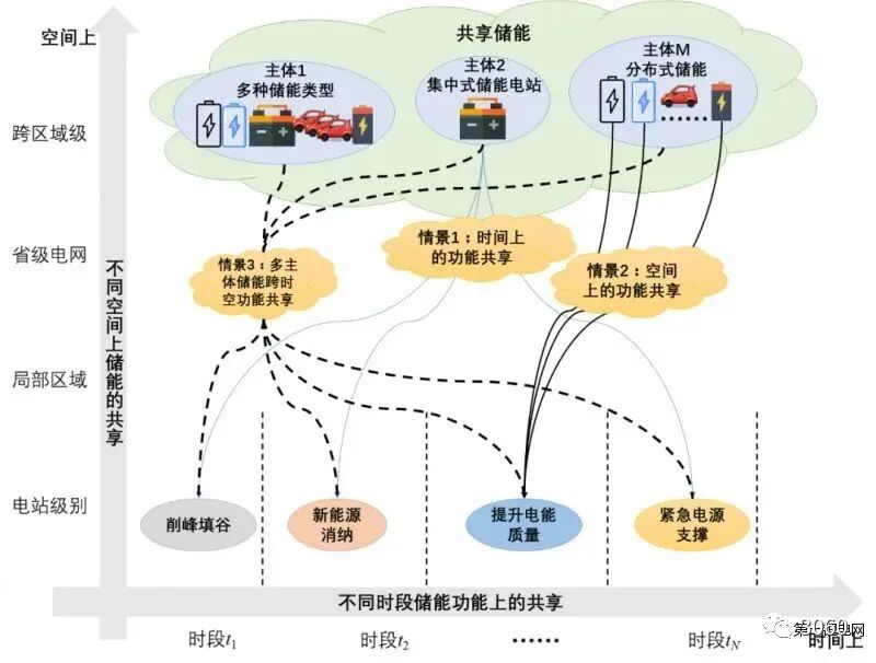 是指将电源、用户和电网三侧的储能资源整合起来,以电网为枢纽进行优化配置,既可为电源、用户提供服务,也可以灵活调整运营模式实现全网共享。