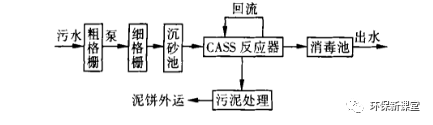 对于一般城市污水,CASS工艺并不需要很高程度的预处理,只需设置粗格栅、细格栅和沉砂池,无需初沉池和二沉池,也不需要庞大的污泥回流系统(只在CASS反应器内部有约20%的污泥回流)国内常见的CASS工艺流程如图1所示。
