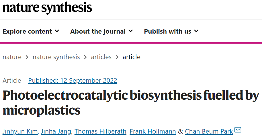 Nature Synthesis:微塑料为燃料的光电催化生物合成