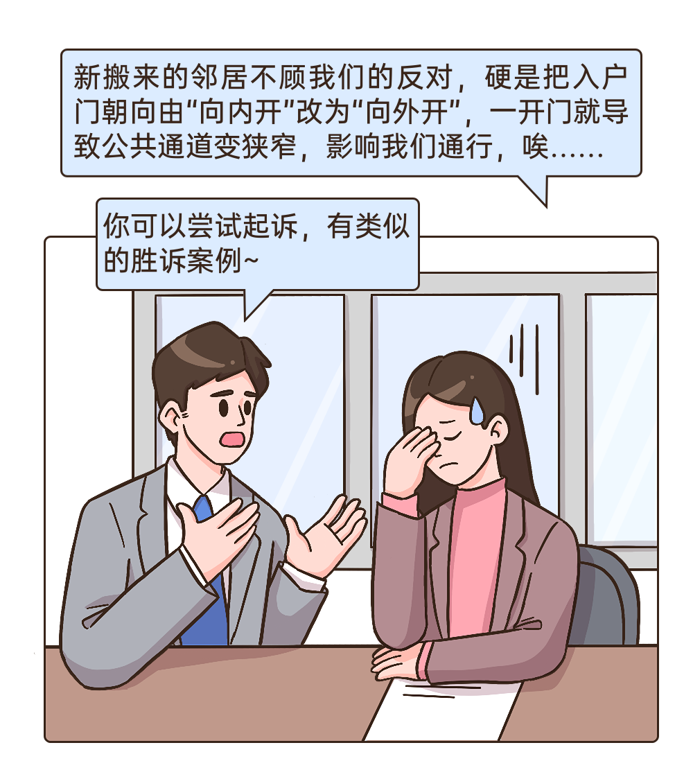 装修时把入户门改成向外开?妨碍七旬邻居通行,法院怎么判?