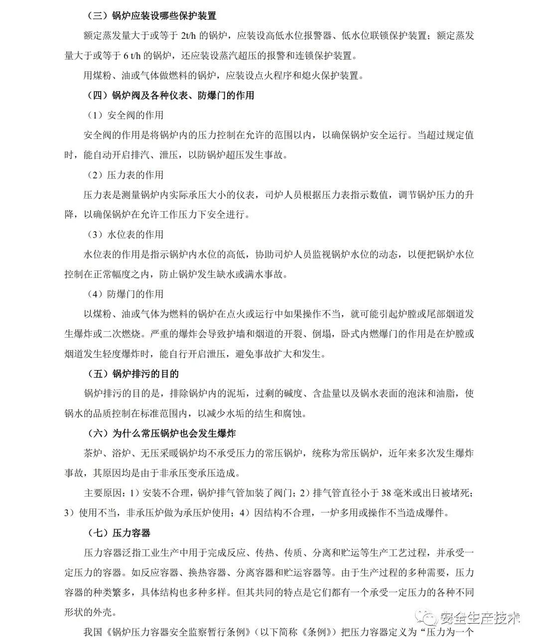 锅炉的三大安全附件分别是安全阀、压力表、水位表。炉水长期处理不当可能导致锅炉爆炸。锅炉检测项目的周期外部检验,每年进行一次。