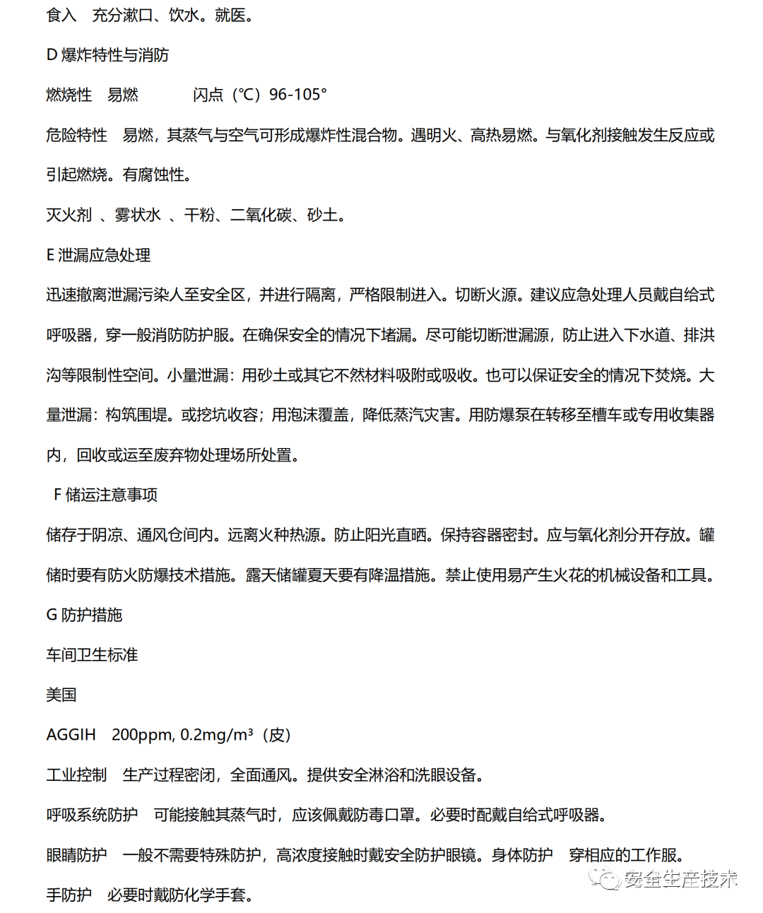 无色、具有苦杏仁味的气体,密度为空气的0.94倍,熔点-13.4℃,沸点26℃。溶于水、乙醇和乙醚。溶于水生成为易挥发的氢氰酸。氰化氢与体内氧化型细胞色素氧化酶的三价铁离子有很强的亲和力,与之牢固结合后,酶失去活性,阻碍生物氧化过程,使组织细胞不能利用氧,造成内窒息。
