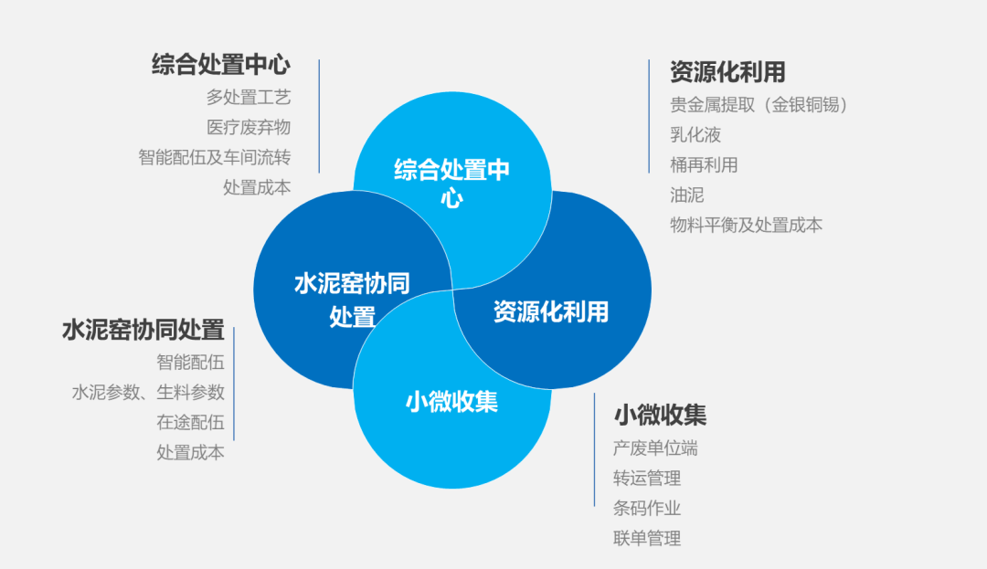 绿树环科基于众多项目实施,基于对危废行业的理解对危废处置行业进行了再细分,绿树环科基于再细分的领域架构了各领域的解决方案。