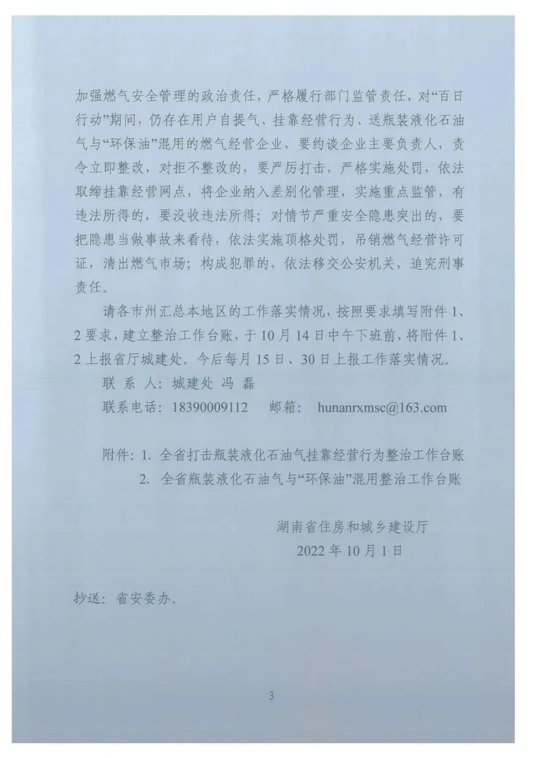 【通知文件】湖南省住房城乡建设厅《关于严厉打击瓶装液化石油气企业挂靠经营》的通知