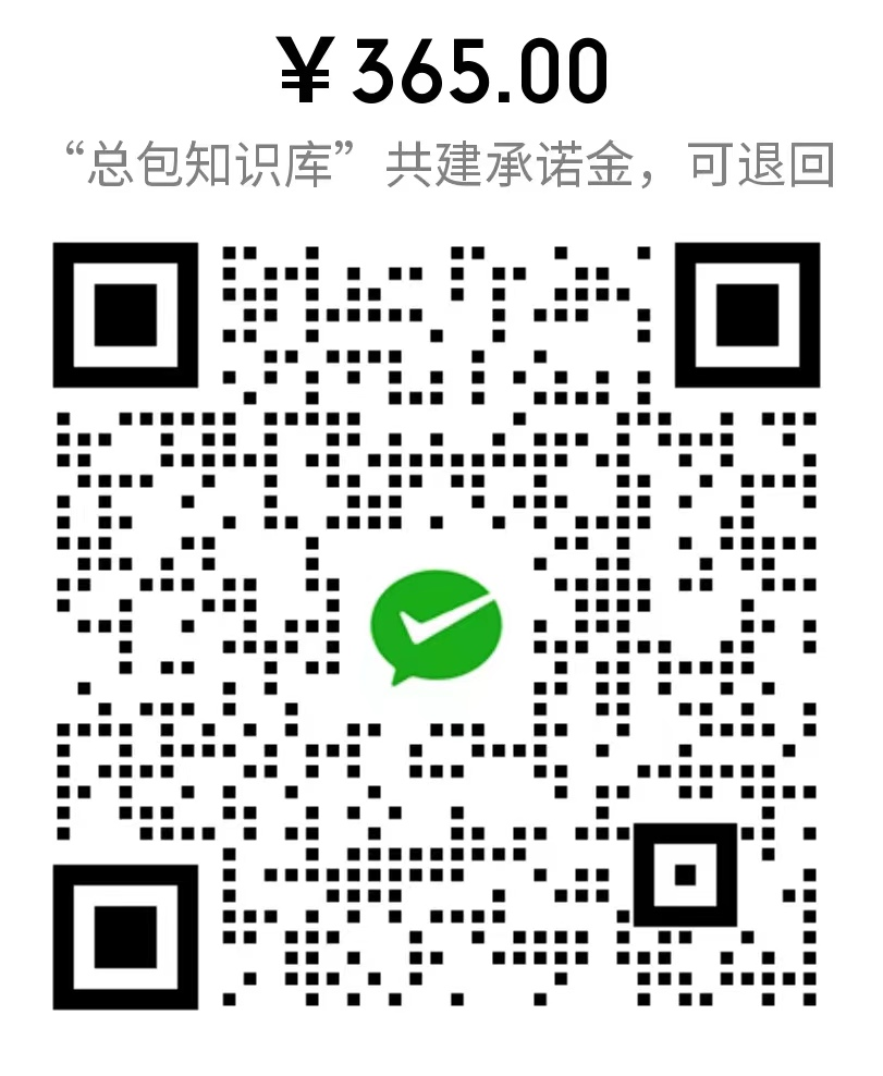 4,扫码缴纳365元“总包知识库”共建承诺金,提前获得知识库资格。2年内,在你按照上述3种方式贡献自己的成果后,共建承诺金全额退还,并额外得到35元红包奖励,即总包君会发给你2个200元大红包。