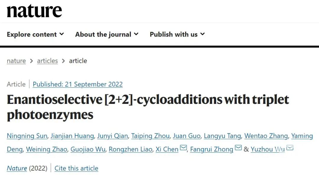华中大钟芳锐教授/吴钰周教授、西北大学陈希教授 Nature: 提出“三重态光酶”的概念